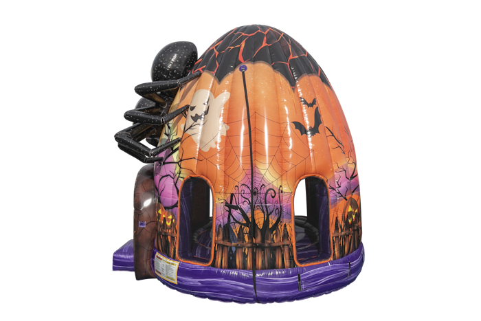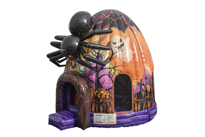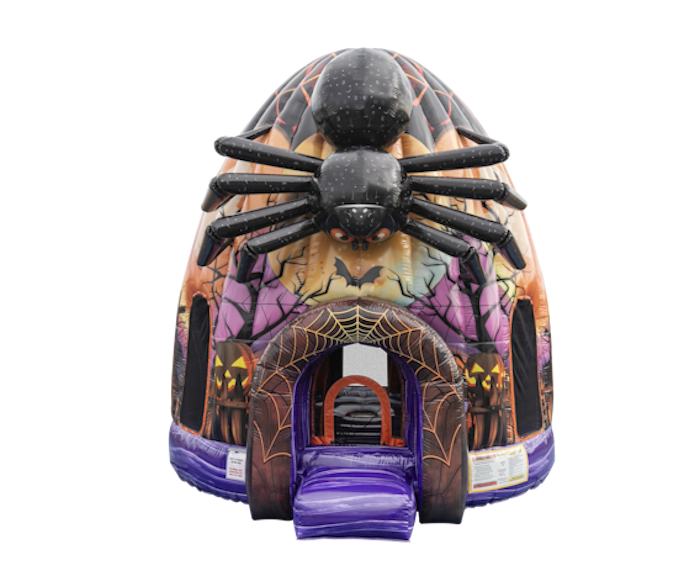 Step inside the Giant Spooky Spider Bounce House—if you dare! This spooky inflatable is the perfect centerpiece for any Halloween party or fall festival. Designed with a creepy-crawly theme, it features giant 3D spiders, web patterns, and eerie details that bring the fun (and fright!) to life.