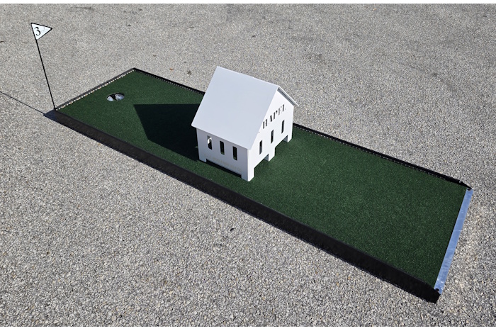 Bring the wedding theme to life with the Chapel Mini Golf Wedding Obstacle, featuring a charming chapel structure placed along the putting lane. Players must skillfully putt their ball around this decorative building on the way to the hole. The design adds a classic wedding element that fits beautifully into reception entertainment. It’s a unique and memorable addition to any wedding-themed mini golf course.