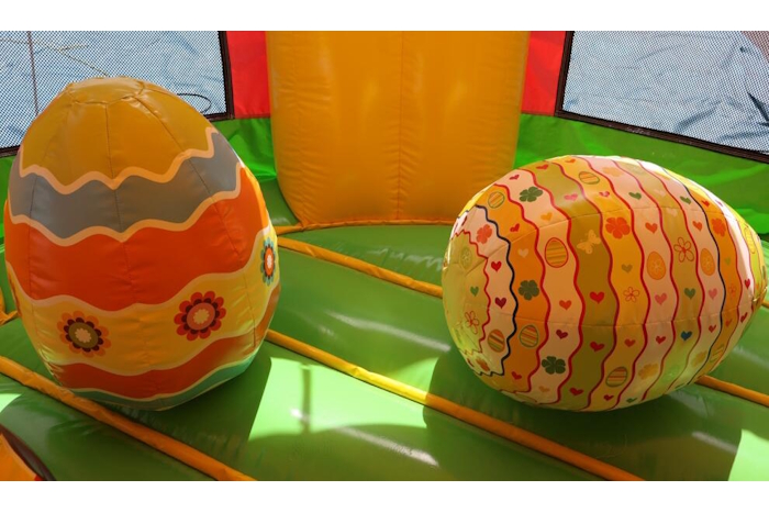 Bring the magic of Easter to life with our Easter Basket Bounce House, the perfect centerpiece for spring festivals, church events, school carnivals, and backyard celebrations. Designed to look like a giant, colorful woven basket overflowing with cheerful Easter eggs and topped with an adorable chocolate-style bunny, this bounce house delivers instant “wow” factor for guests of all ages.