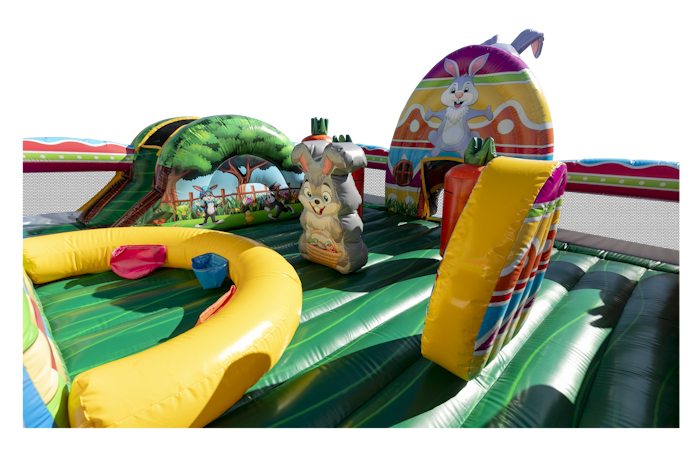 Bring the magic of springtime to your next event with our Easter Bunny Playland, a bright and cheerful toddler-friendly attraction designed especially for children ages 5 and under. Bursting with color and charm, this adorable playland features giant carrots, playful flowers, and a friendly Easter Bunny welcoming little ones into a world made just for them.