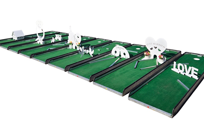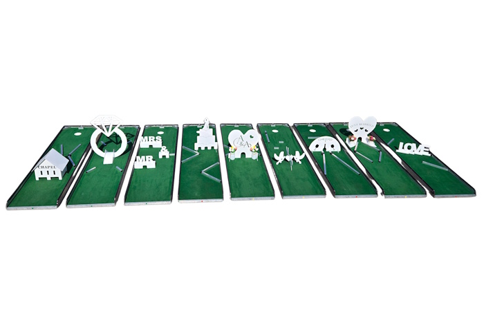 Bring a unique and memorable experience to your celebration with our 9-Hole Wedding-Themed Miniature Golf Course—the perfect blend of fun, décor, and entertainment for weddings, receptions, bridal showers, and engagement parties.