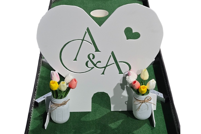 Make your event truly one-of-a-kind with a Custom Wedding Mini Golf Obstacle designed specifically for your big day. This personalized obstacle can feature your initials, wedding date, names, or custom wording, creating a meaningful centerpiece for your wedding mini golf rental. Guests will love putting their way around a design that celebrates the couple while enjoying fun interactive wedding reception entertainment. Perfect for weddings, engagement parties, bridal showers, and anniversary celebrations, this custom obstacle adds a memorable and personal touch to your wedding lawn games.