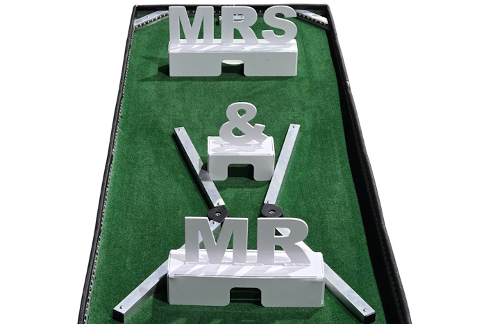 The Mr & Mrs Mini Golf Wedding Obstacle is a perfect way to celebrate the newlyweds while adding playful entertainment to your event. This obstacle features bold “Mr & Mrs” lettering that golfers must putt around as they make their way to the hole. It creates a fun challenge while highlighting the theme of the special day. Ideal for wedding receptions and bridal celebrations, it’s a memorable activity guests will love.