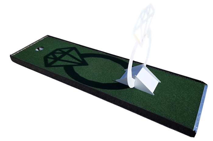 Put a ring on it with the Wedding Ring Mini Golf Obstacle, designed to resemble a sparkling engagement ring along the putting lane. Golfers must carefully guide their ball through or around the ring to reach the hole. This eye-catching piece symbolizes the commitment being celebrated and adds a stylish touch to the course. It’s a perfect feature for weddings, proposals, engagement parties, and anniversary events.